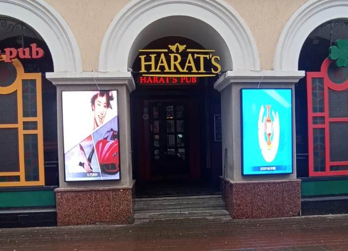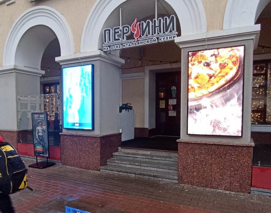 Светодиодные экраны для улицы используются и для выделения входной группы магазина, торговой точки. Экран монтируется, в основном, над входом в магазин и используется в качестве видеовывески с рекламой своего товара. Используются модуля с шагом пикселя 4 мм и выше.